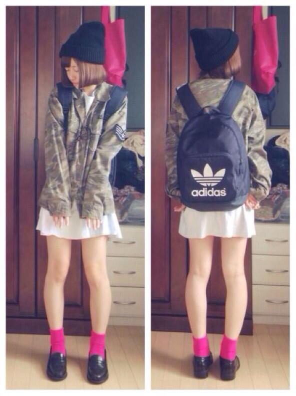 ファッションコーデ בטוויטר 大きめリュックが可愛いキュートな アディダスコーデ T Co V3epetenfj